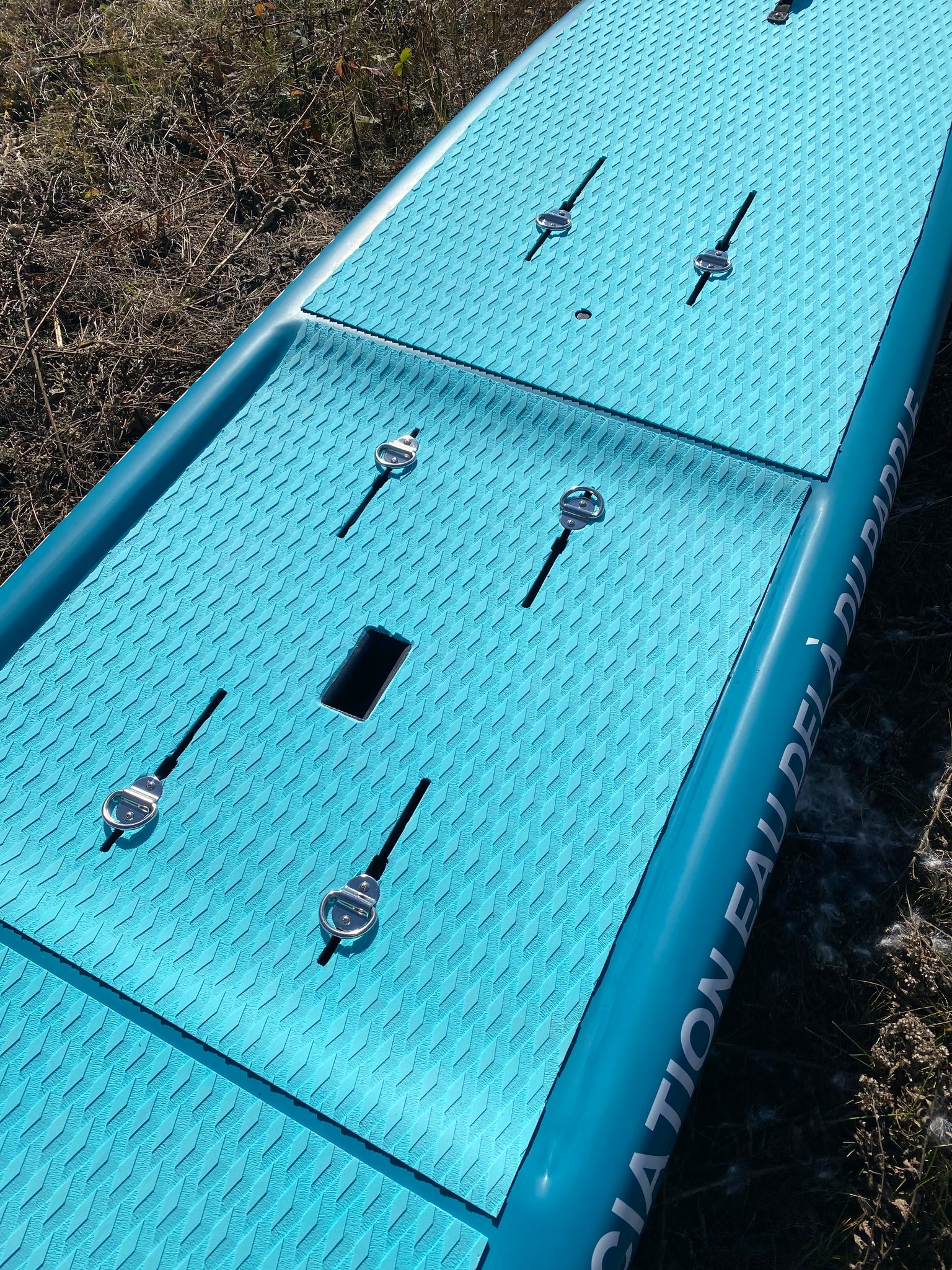 What's more, the board features an adjustable front and rear float system linked by a carbon tube. The board can be used without a float, with a single set of floats or with the two sets of floats supplied.